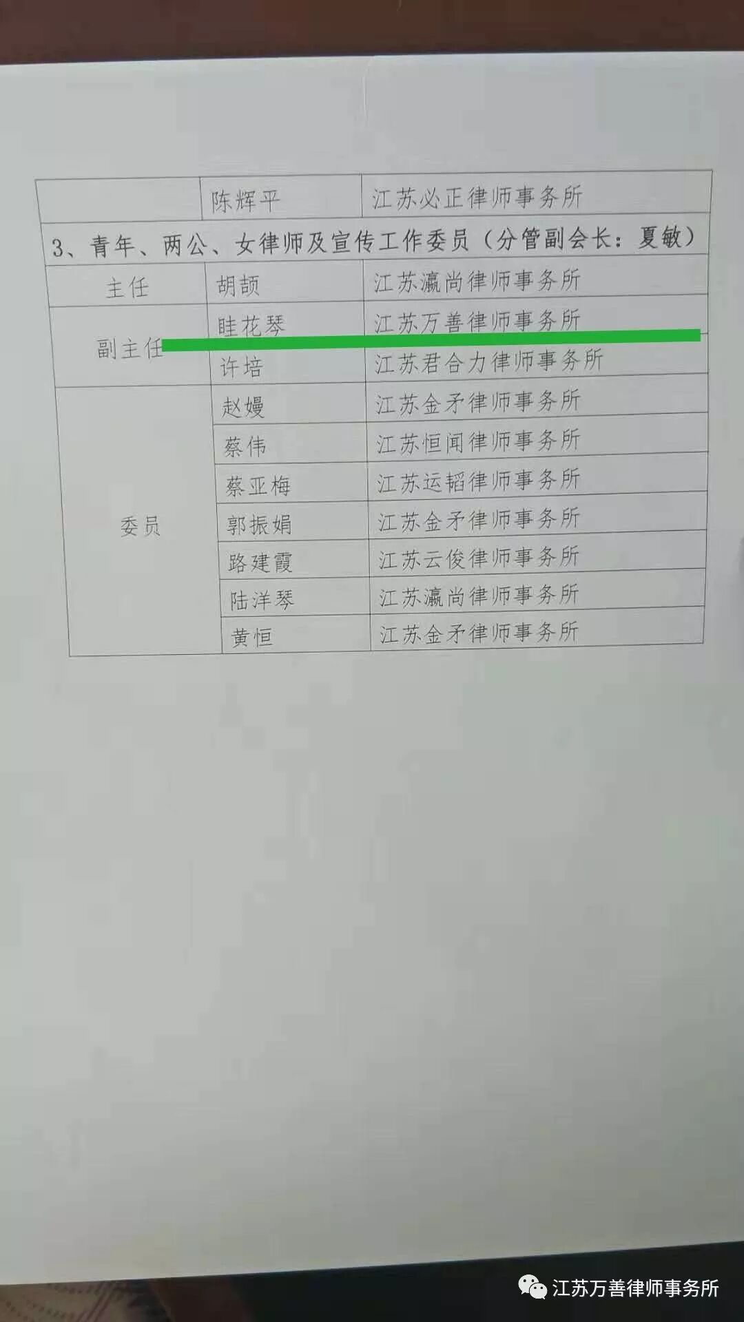 万善律所主任眭花琴律师当选丹阳市律师协会青年、两公、女律师及宣传工作委员会副主任