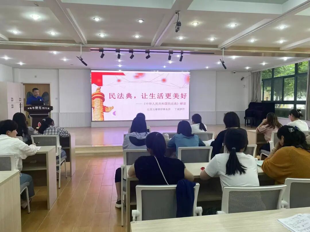 2024年5月22日下午,镇江市丹阳市两级市政协委员、江苏万善律师事务所创办人丁斌律师受邀到丹阳市新区幼儿园进行普法宣讲,现场有40余名教职工聆听了讲座。